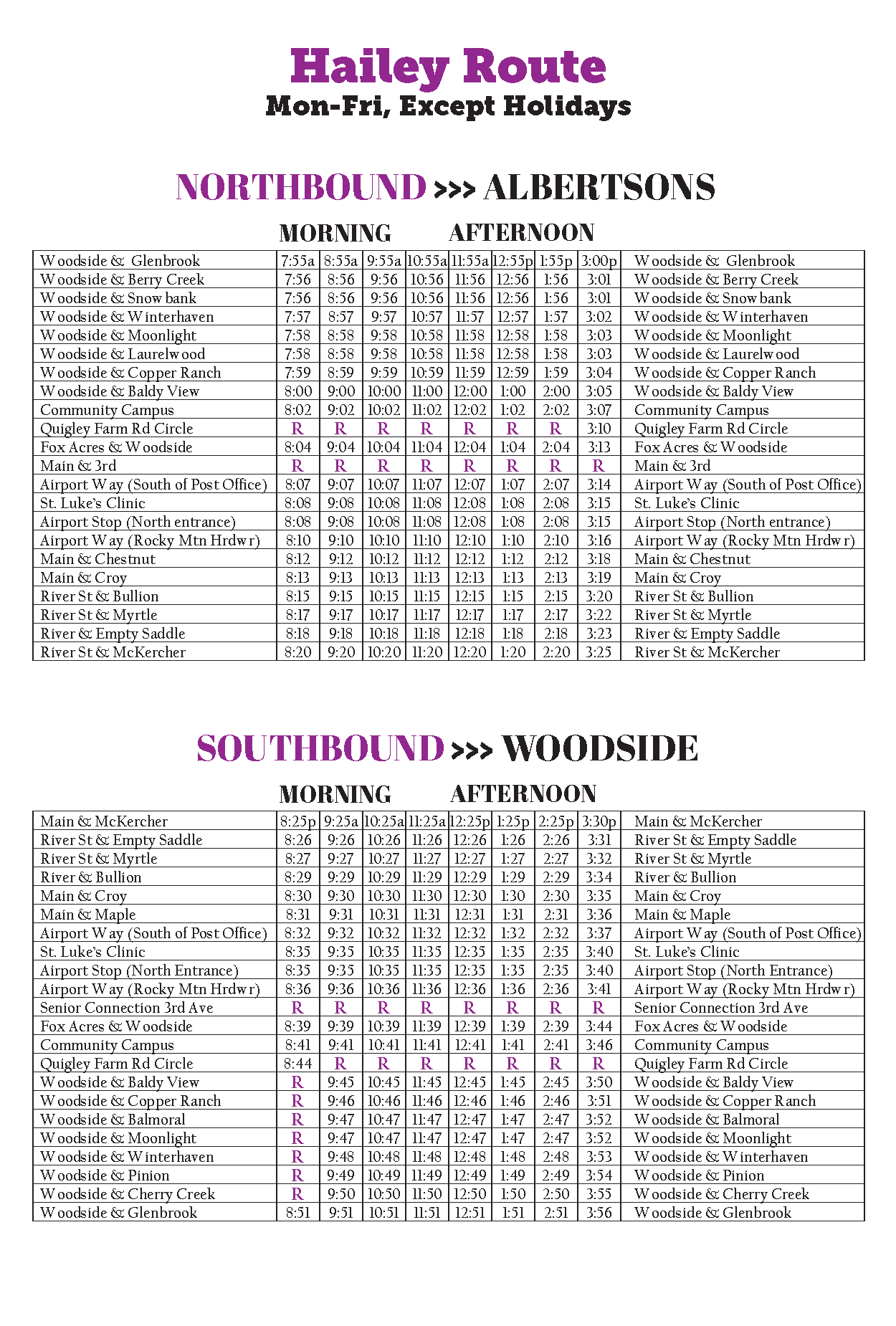 Hailey Route Schedule